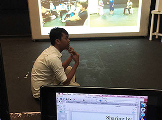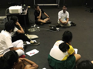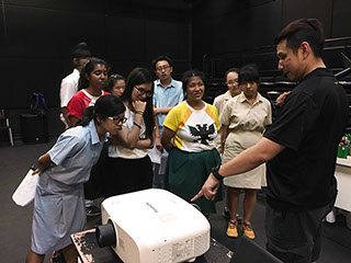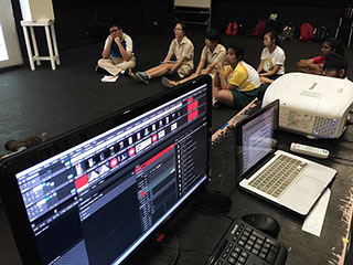 Production Stage Manager Jason Ng sharing his technical knowledge with the participants